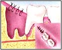 An Incision is made and overlying bone is removed which exposes the crown of impacted tooth.