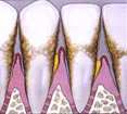Human teeth maintain their position because of the gingival tissue that is present on top of the bone. The part of the gum can be seen is about 2-3 mm higher than the true attachment of the gingiva to the tooth in health that creates a portion that appears like a turtleneck collar. This particular space is the most common area of bacterial housing and growth. A localized infection is caused by the harmful toxins released by the bacteria residing in the space. This inflammation caused by the bacteria damages the fibres that connect the tooth and the gingiva. Periodontal disease's typical progressive nature can be seen if the inflammation is allowed to penetrate to deeper layers of the bone and gingiva.