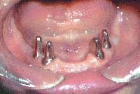 An overdenture in a patient's mouth